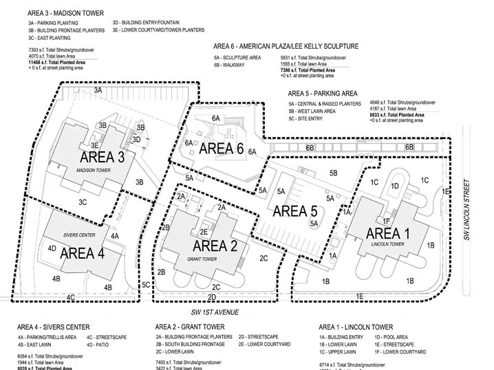 KLA used their experience designing new landscapes on structure to evaluate the needs of the 35-year-old design and the accompanying maturing landscape planting, lighting, irrigation and other site features and issues.