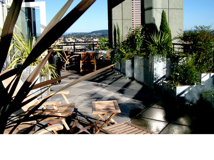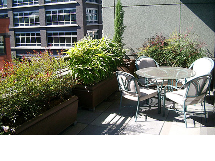 Urban gardens have many shapes, sizes and forms. This 650 square foot terrace garden is on the 14th floor of an exclusive condominium project designed by GBD Architects in Portland’s Brewery Blocks Redevelopment District. The panoramic views and lush foreground of distinctive plant types invite the residents to use the terrace daily.