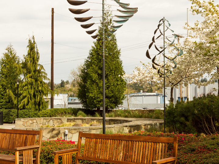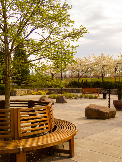 Located near the windy shores of the Columbia River the shopping center’s outdoor plaza, walks and parking lot utilize drought and wind tolerant plantings. KLA addressed the client’s environmental concerns for water conservation and management.