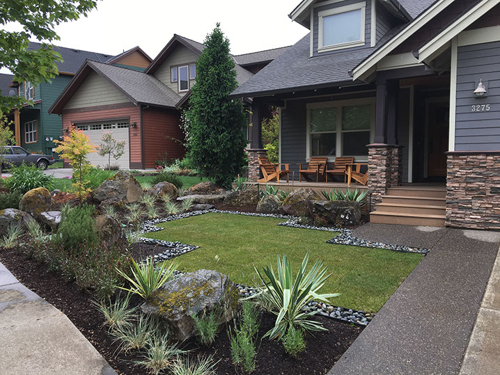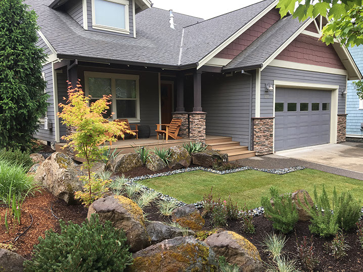 In the hills above Hood River, KLA provided the owners with a renovated landscape which speaks to the genus loci of the surrounding area. The front yard features locally sourced specimen boulders and river rock, along with a specialized plant palette designed for Hood River's unique climate.