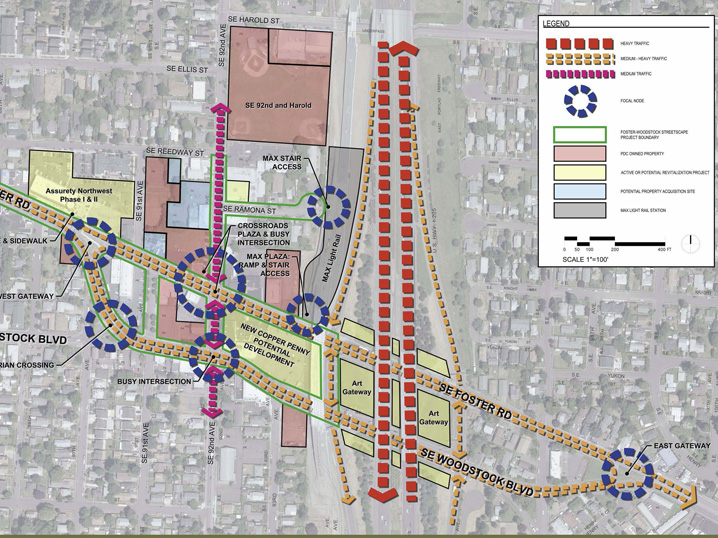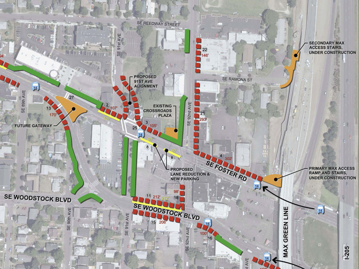 KLA completed schematic design and design development services for the Foster/Woodstock Streetscape improvements adopted by Portland Bureau of Transportation. Ramona Street, a neglected side street cul de sac, was redesigned by KLA into an enhanced pedestrian dominant connection to the Green Line Max Station platform in 2011.