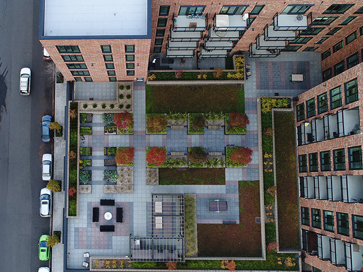 The Goat Blocks have become iconic in SE Portland and the implementation of a new superblock has been a delicate endeavor. KLA has played an important role in mitigating surface level stormwater runoff, designing for the public realm, which includes a half block market terrace and Yamhill Alley. The detailed design also accommodates a large residential amenity deck, and integrating five separate eco-roofs into the property.
