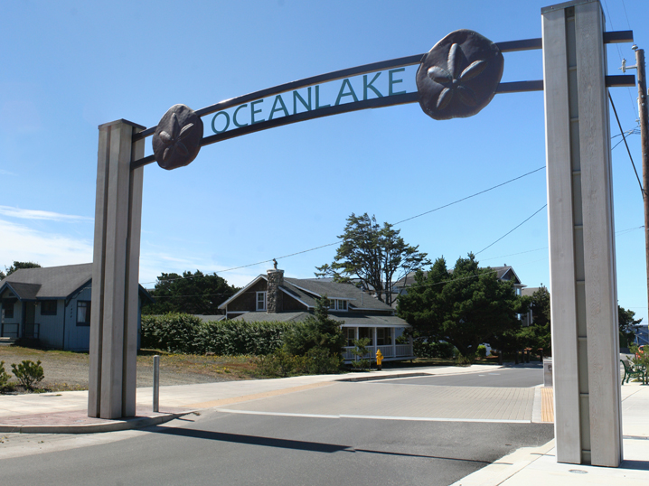 The beach combers and scallywags that access the ocean shoreline by way of 15th street provided inspiration for the design of a landmark archway featuring the most treasured beachcomber find; a sand dollar. Highly detailed wood and iron supports anchor the arching OceanLake name and two flanking giant copper sand dollars. Native coastal shore pines create an evergreen alley complete with sustainable permeable paving in parking bays, traffic-calming chicanes and intersection improvements that help define this people-oriented street as an amenity to the community. KLA also developed a plan to phase public and private investment on publicly owned property to fill the gaps in the historic main street environment.