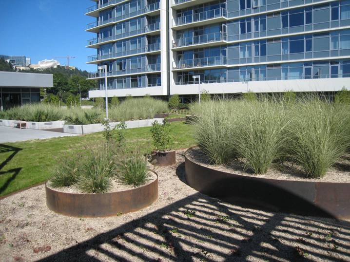 Portland’s South Riverfront is the home of The Riva on the Park a 22 story LEED Gold Certified apartment tower overlooking Caruthers Park. The landscape design includes multiple levels of roof gardens, private terraces, eco roofs, and townhome terraces along SW Lane, a pedestrian green street.
