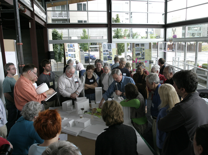 Our team has led public awareness meetings and participatory workshops to help define the park’s programming and community concerns. This, along with input from City Bureaus, Portland Development Commission, neighboring developers and citizen groups, formed the building blocks for our final design. Construction is due to begin in 2011. Construction was completed in 2013, adding the final jewel to the string of parks in the Pearl District.