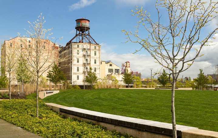 Our goal is to create a park that will endure for generations to come. The 3.5 acre site is designed as an open space for informal recreation with a future pedestrian bridge to the Willamette River Greenway Trail. The diverse needs of an actively growing urban neighborhood - safety, pedestrian flow, programming for adults, children and dogs, plus site restraints such as railroad/street right of ways, brown field concerns and historic connections - are all issues addressed in the design.
