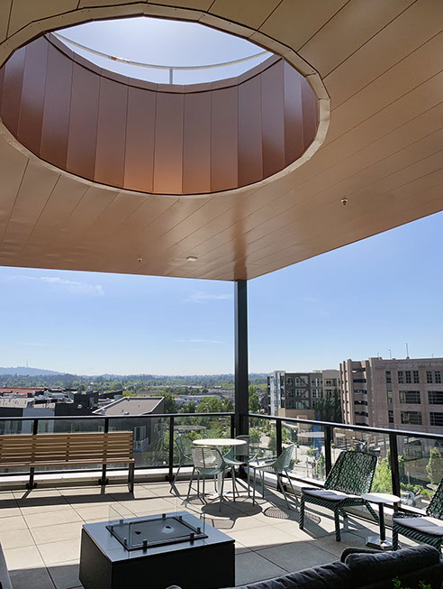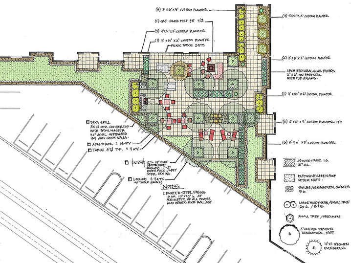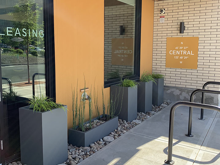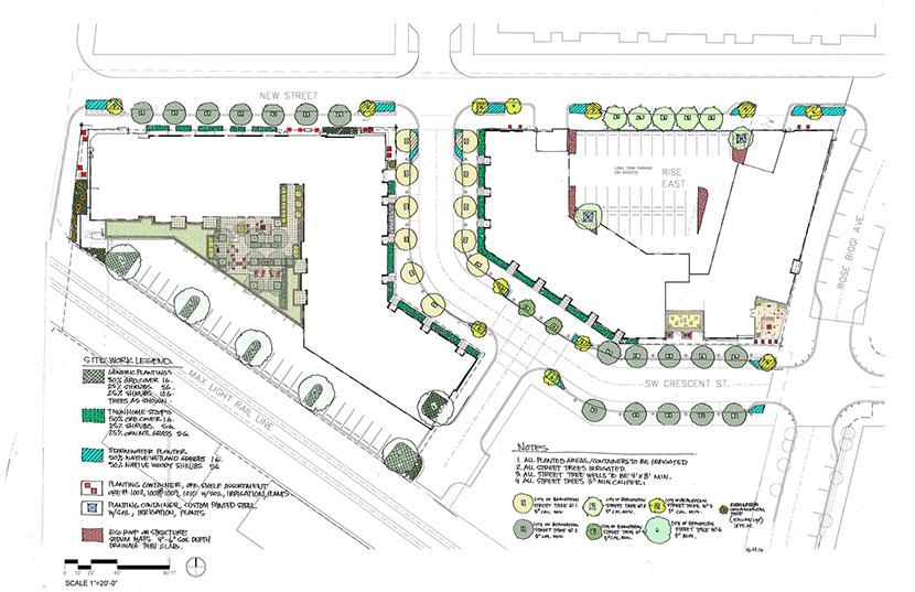 Adjacent to The Round South Plaza, at the site of the former Westgate Theater in Beaverton, KLA helped envision a new ‘urban village’, with vibrant streetscapes and cozy amenity terraces that feature lush plantings, BBQ’s, and communal fire pits. The work was achieved in tandem with Ankrom Moisan Architects, and includes new town homes, vibrant retail spaces, and pedestrian friendly sidewalks. Stormwater and eco-roof plantings collect and treat rainwater coming off of the new street and buildings.